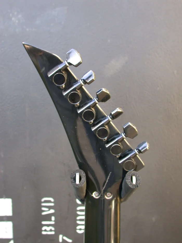This guitars features the unique (i.e. time consuming & expensive) construction found on only the first 150 or so Jackson guitars. A 5 piece center with the 2 side wings added for a total of 7 pieces!