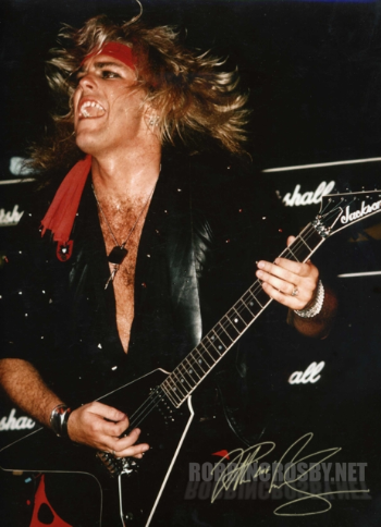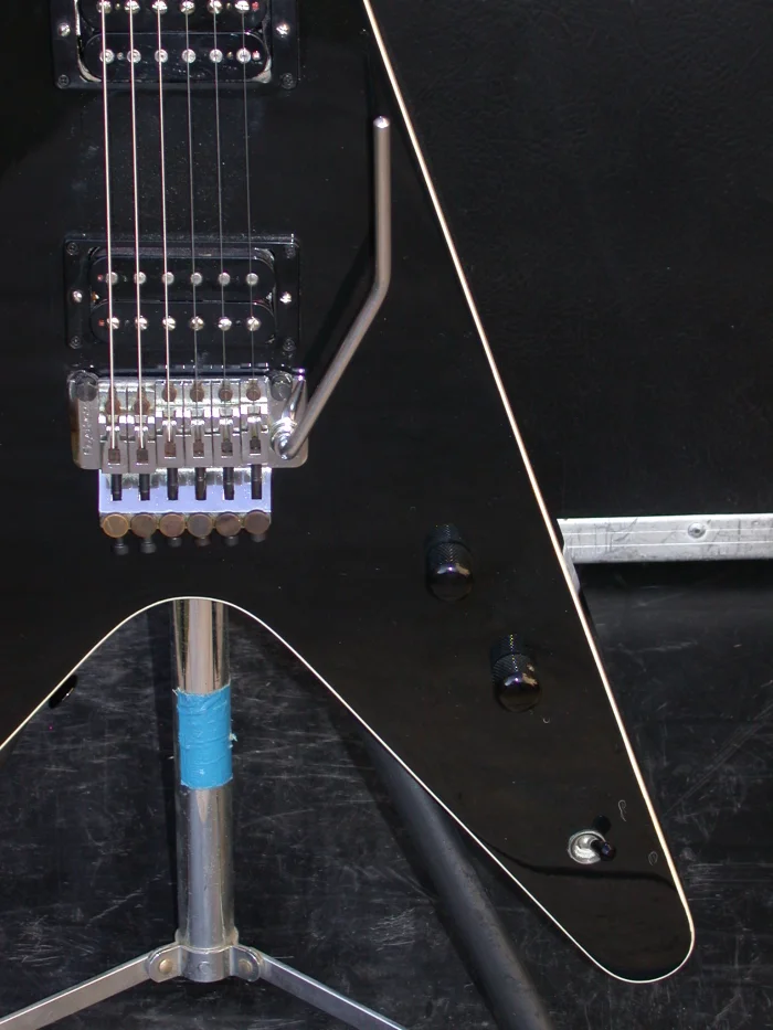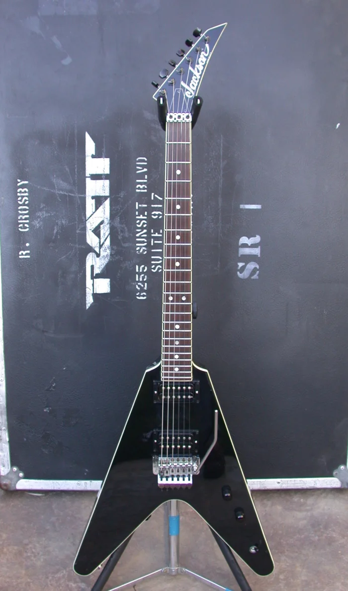 Ordered on March 9 and delivered on September 2, 1983. Serial# J0005 (See center right pic), The first Roundhorn Jackson Flying V. Custom built by Mike Shannon and Grover Jackson for Robbin.