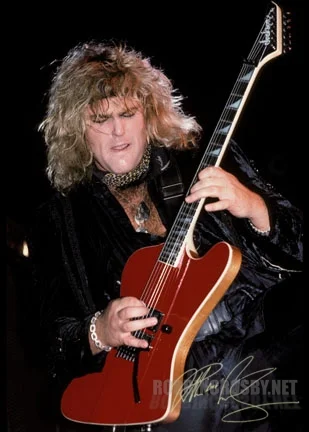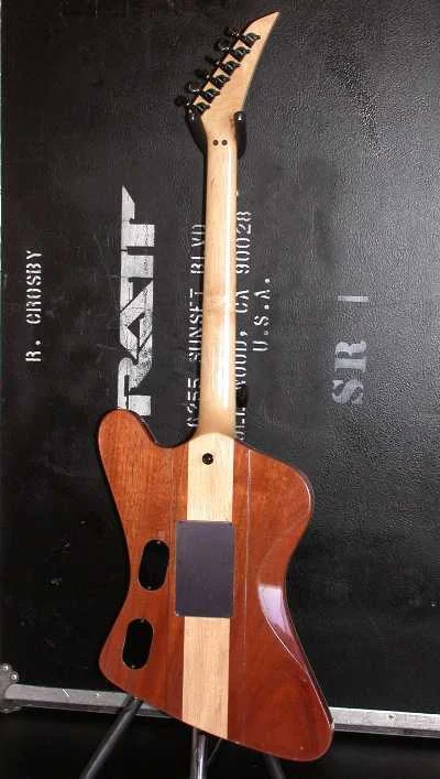 Quickly Built & rushed via Federal Express next day air to Robbin while on the "Dancing Undercover" tour in Biloxi Mississippi January 24, 1987. There was obviously some sort of unforeseen emergency shortage of guitars on that tour! Probably the result of Robbin breaking one or more of his instruments. He was a self-professed "Animal" with his guitars and they took quite a pounding while on tour. Note the usual "divot" in the pic at lower right. Typical wear & tear for him.
